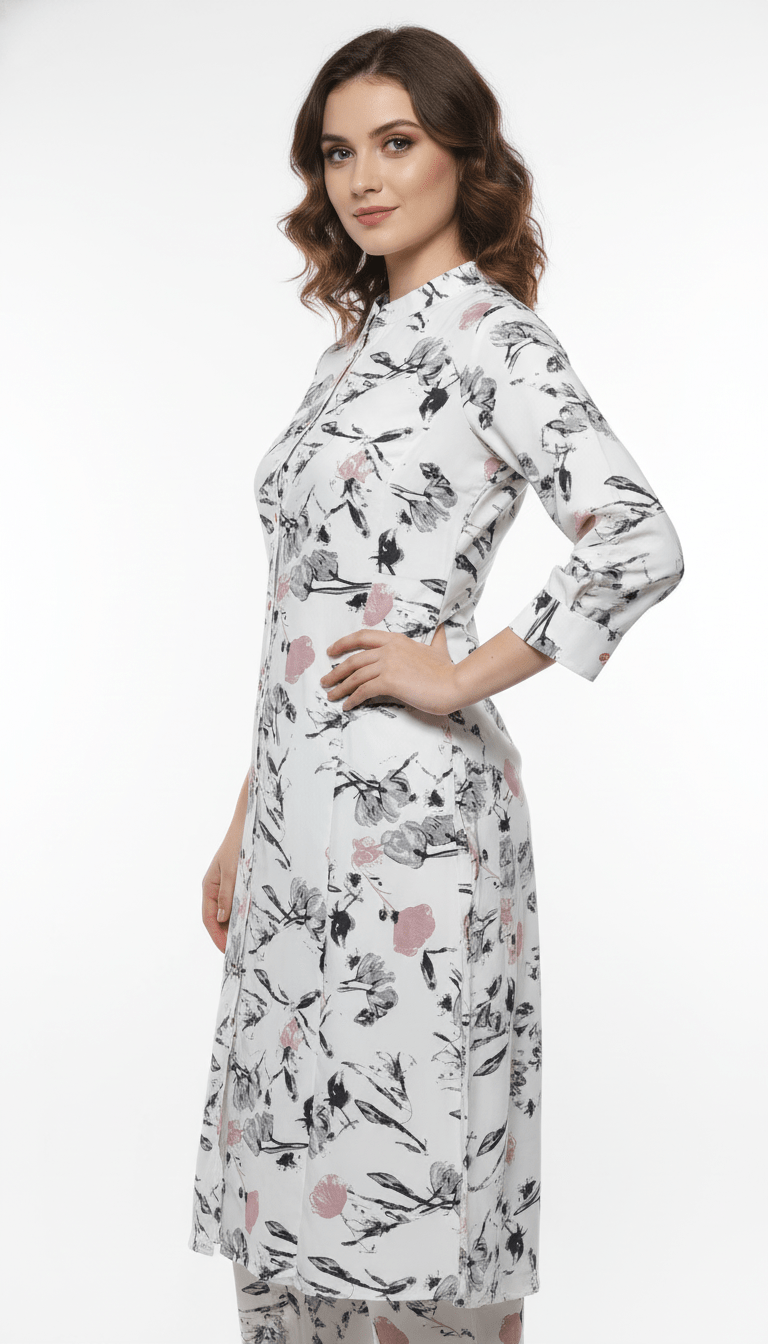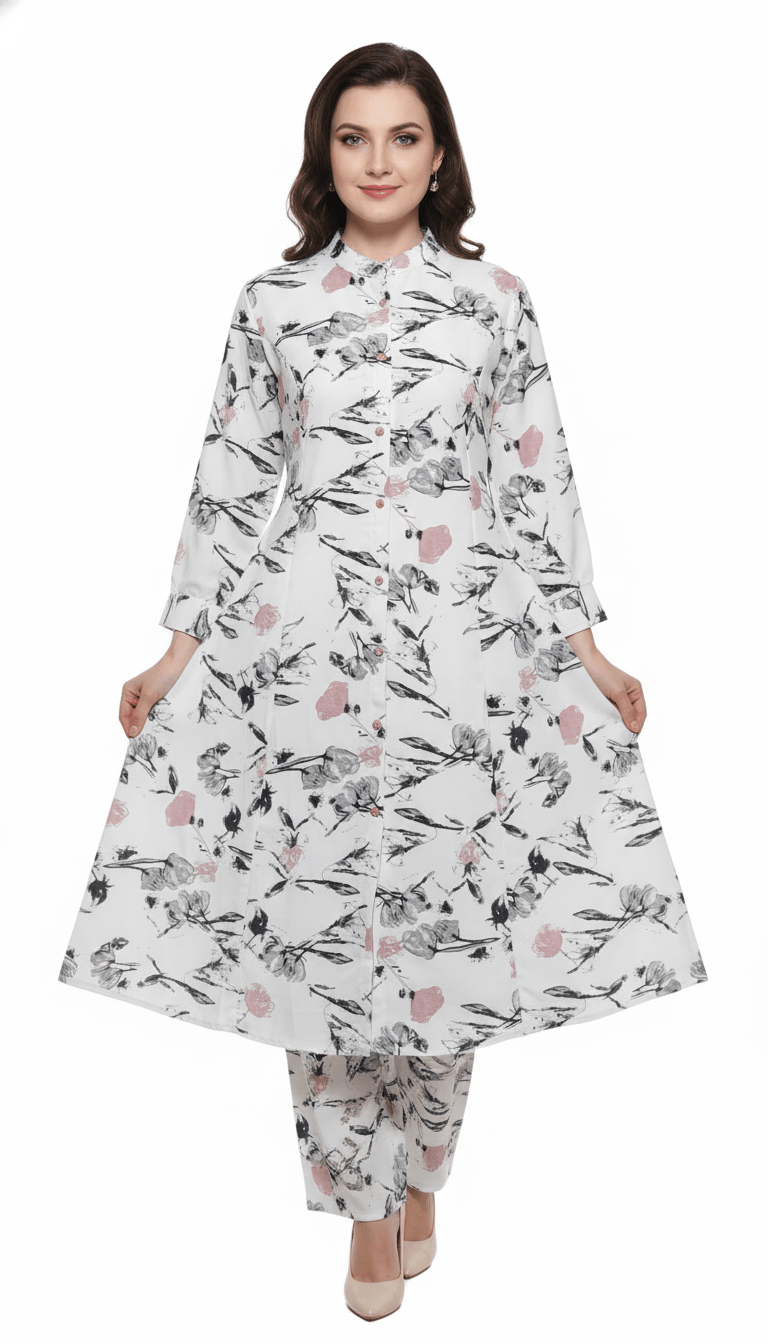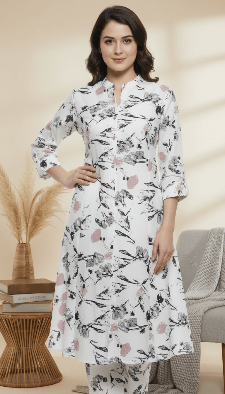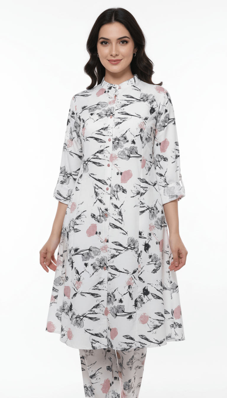 Elevate your everyday style with the Seoul Blossom Kurti Dress, inspired by elegant Korean fashion. Crafted from premium Vatican fabric, this dress offers a soft, breathable, and comfortable feel for all-day wear. The delicate floral print and graceful A-line silhouette create a feminine and sophisticated look, while the 3/4 sleeves add a modern touch. Perfect for casual outings, office wear, or special occasions, this dress combines comfort, elegance, and timeless style in one beautiful piece.