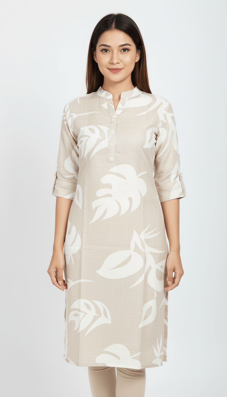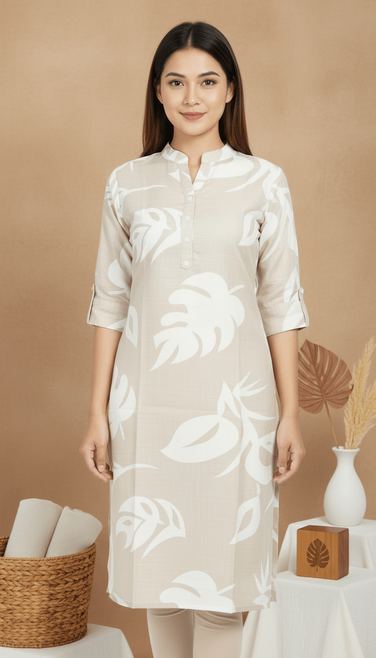 Soft Beige Leaf Kurti Top